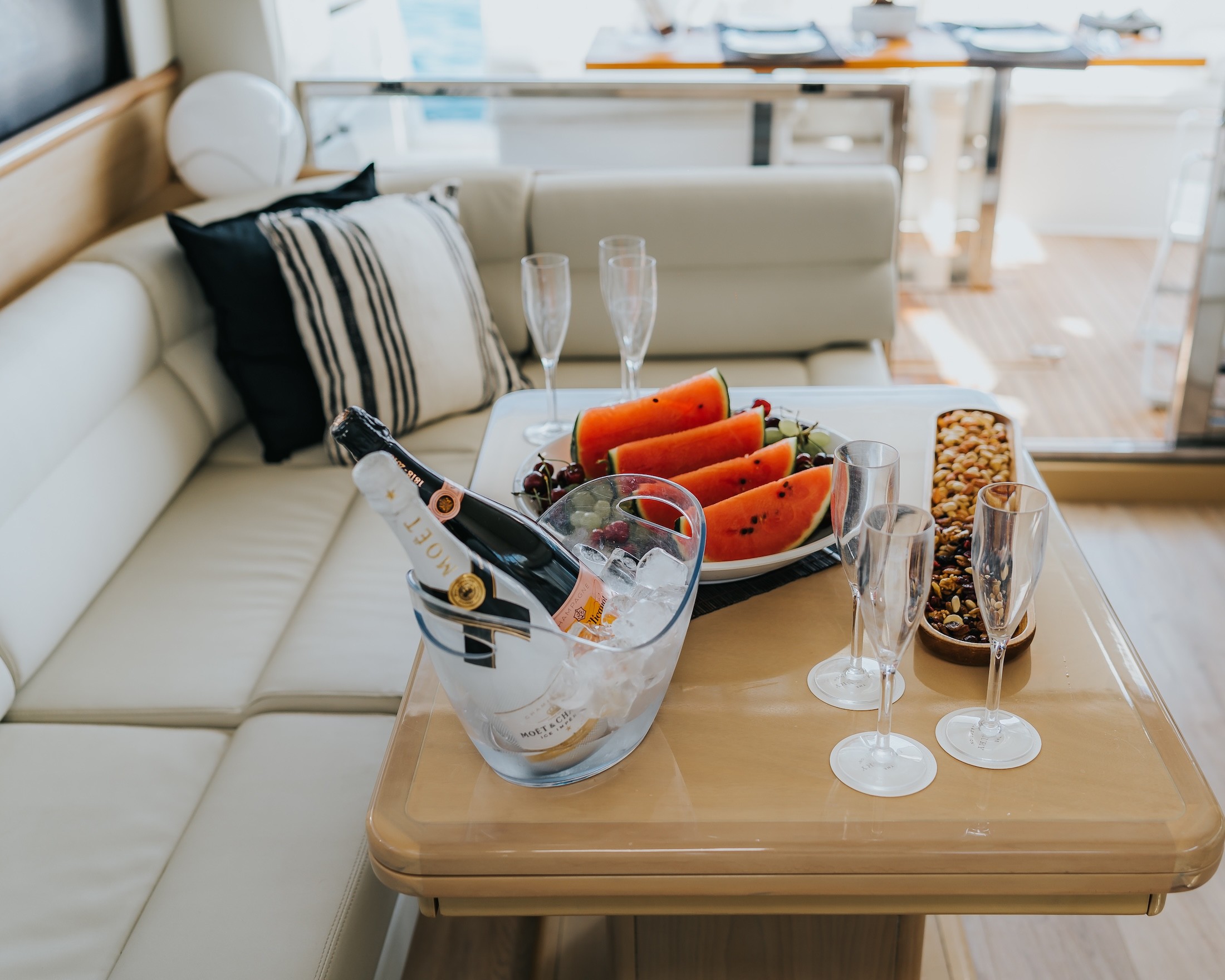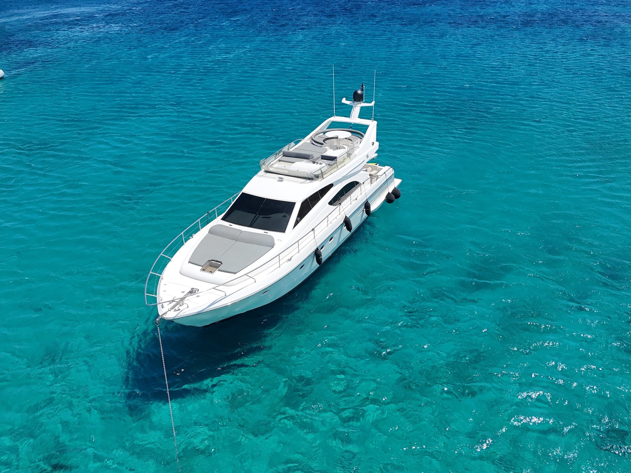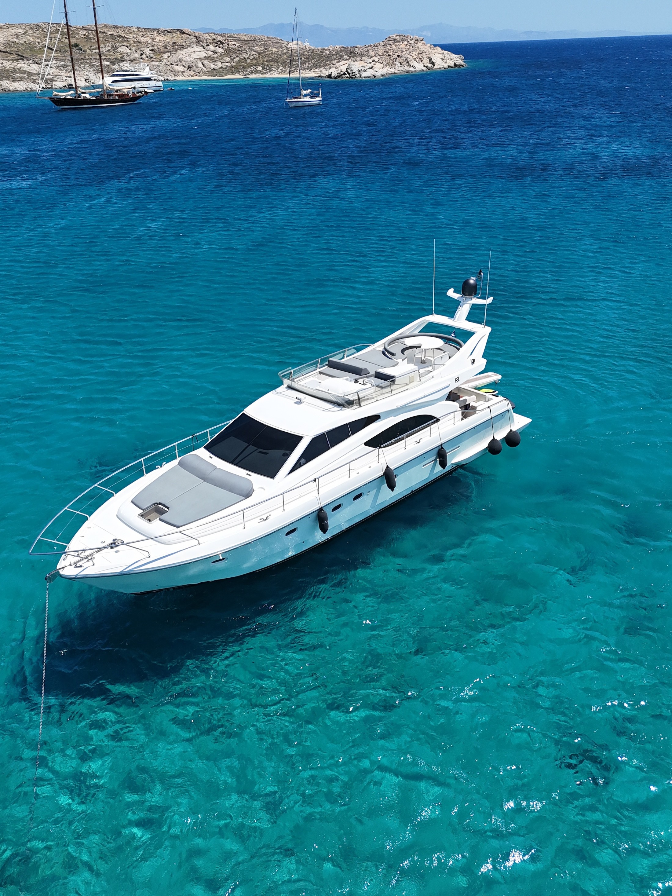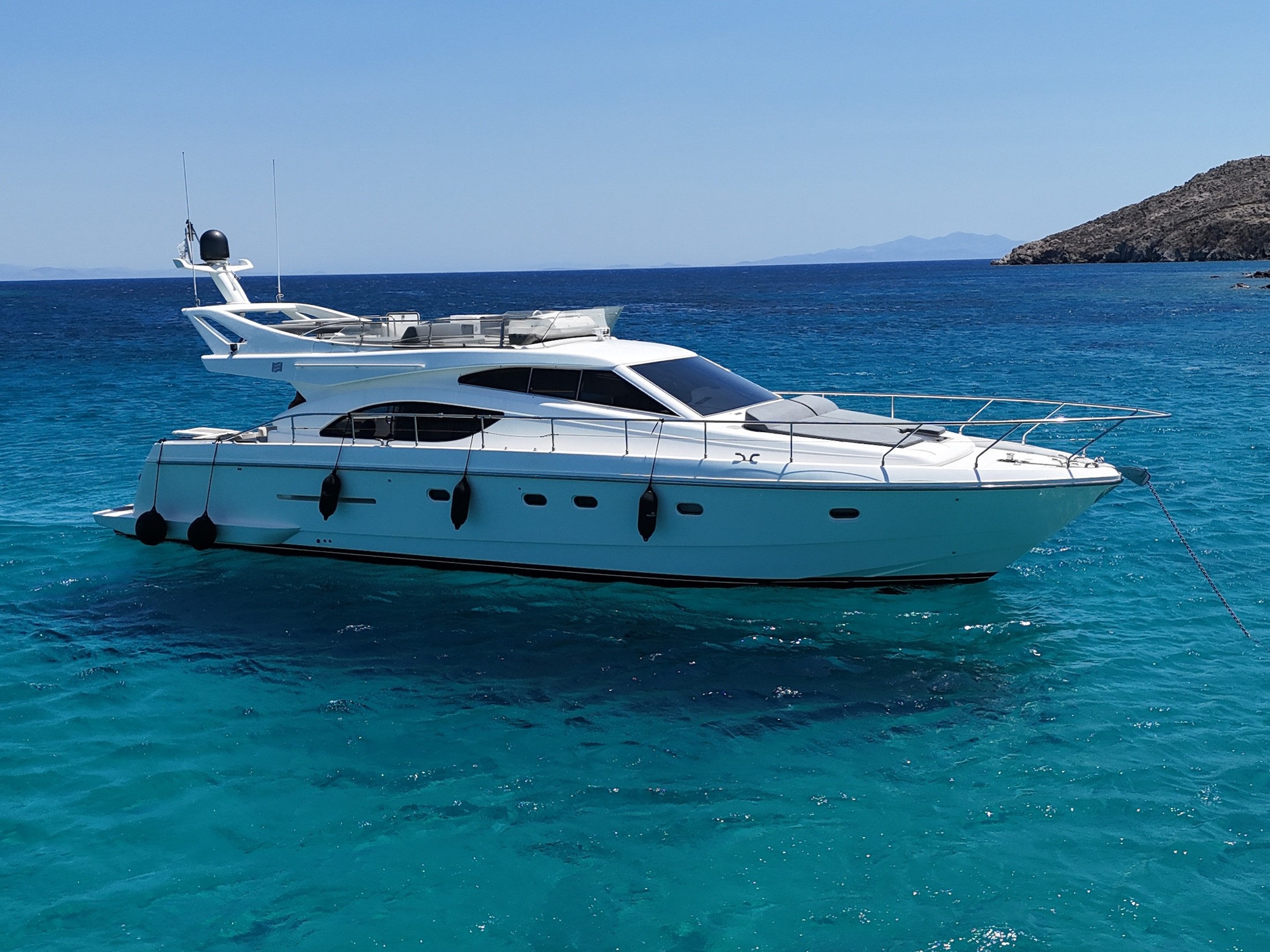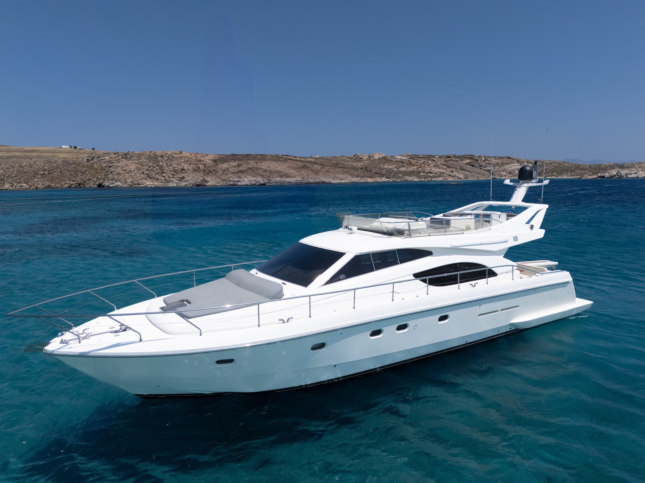 Step into Luxury with the Ferretti 53 - an extraordinary vessel that redefines opulence, blending comfort and personalized service seamlessly. Step into luxury aboard the Ferretti 53 and unwind on its expansive aft deck, where every moment is a testament to comfort and elegance. Whether indulging in al fresco dining or simply basking in the sun, this exquisite space offers the perfect setting for unforgettable moments at sea.